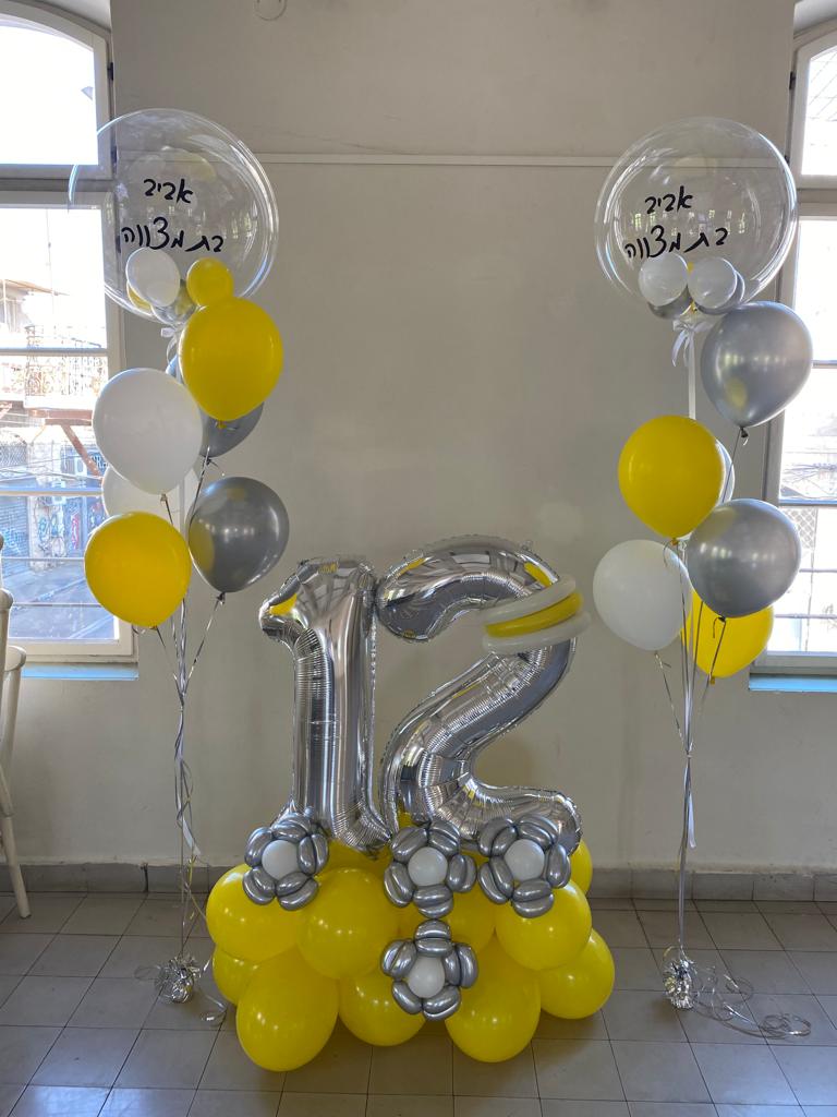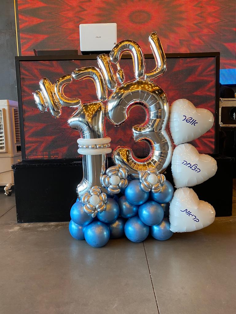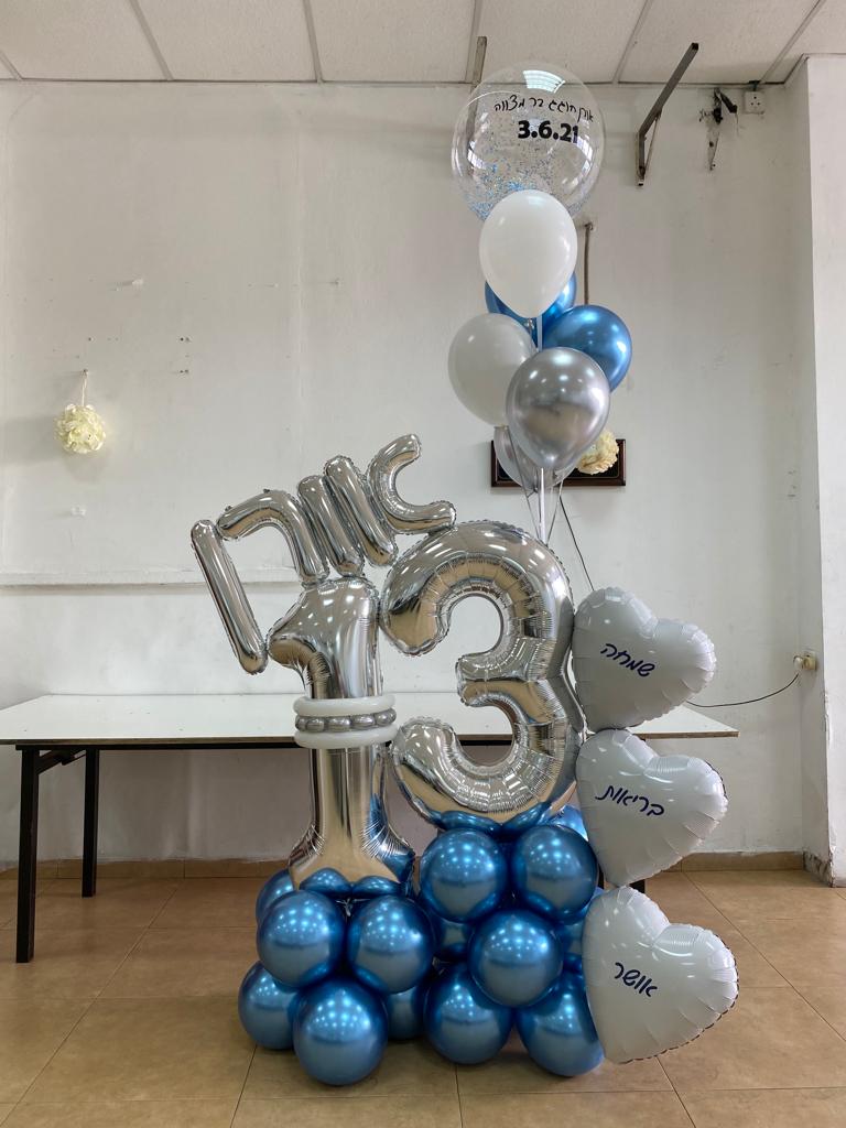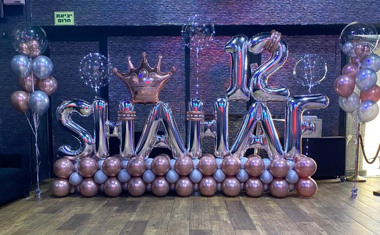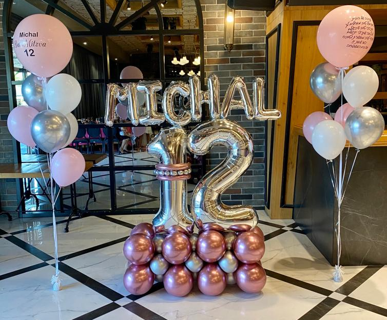 מעמד בת מצווה סילבר + 2 זרי בלונים בעיצוב אישי וכולל שם החוגג/ת