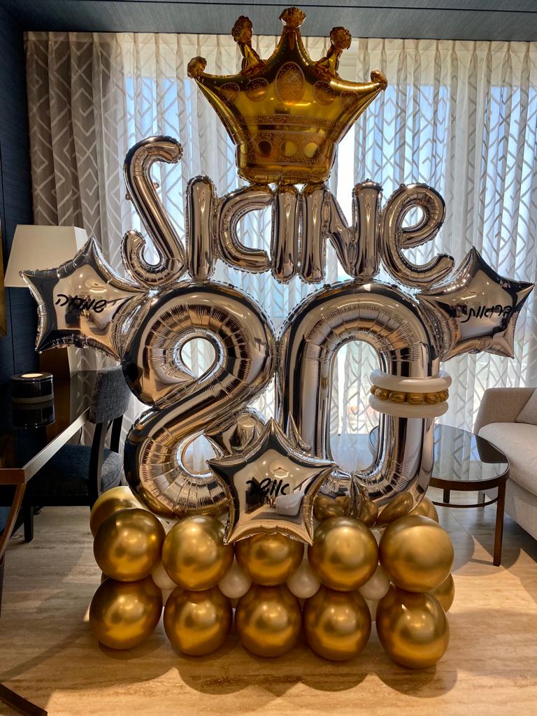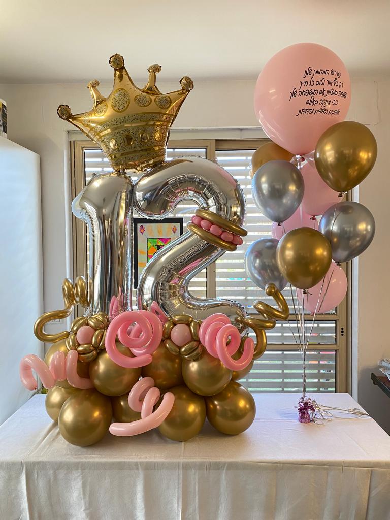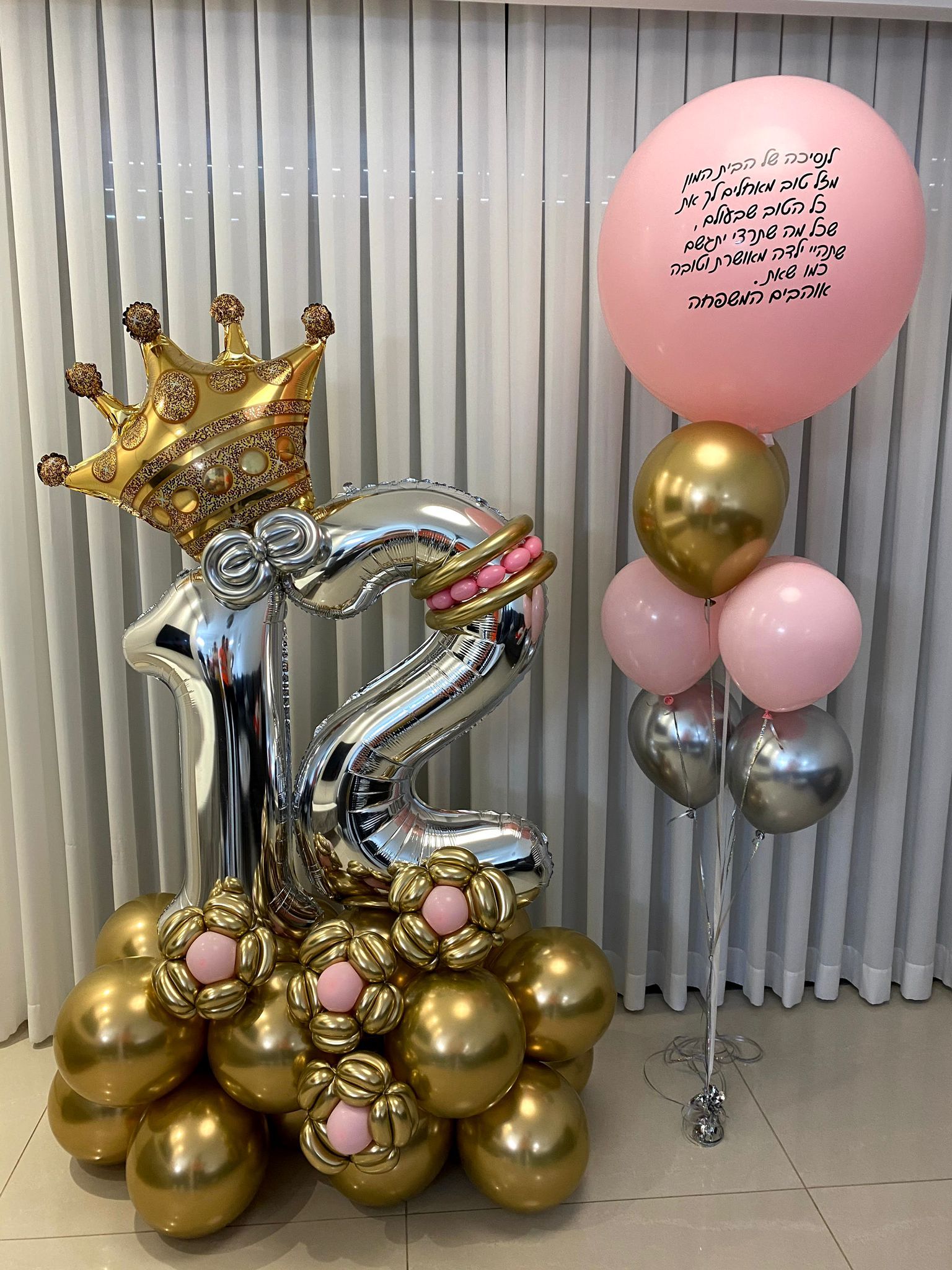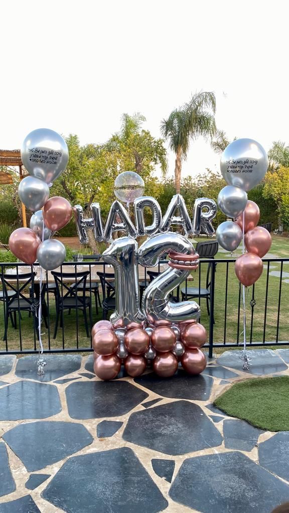 מעמד בת מצווה סילבר + 2 זרי בלונים בעיצוב אישי וכולל שם החוגג/ת